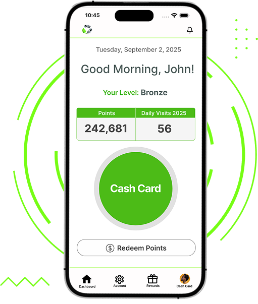 Check-in with the app using your digital Cash Card, start earning points to boost your status and earn rewards